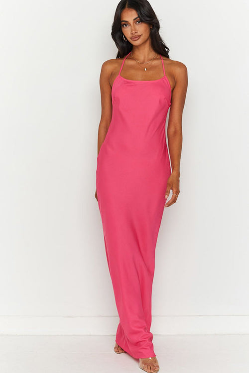 Beginning Boutique - Hot Pink "Skylina" Halter Maxi Dress - NEW WITH TAGS FINAL SALE