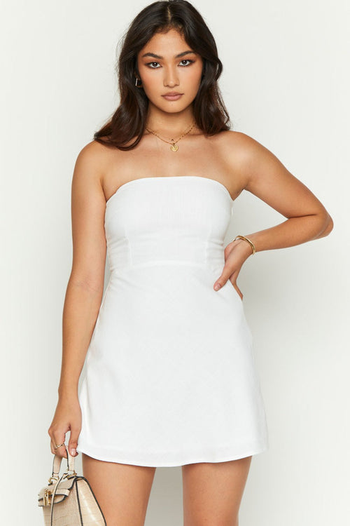 Beginning Boutique - "Arbor White" Linen Strapless Mini NEW WITH TAGS - FINAL SALE