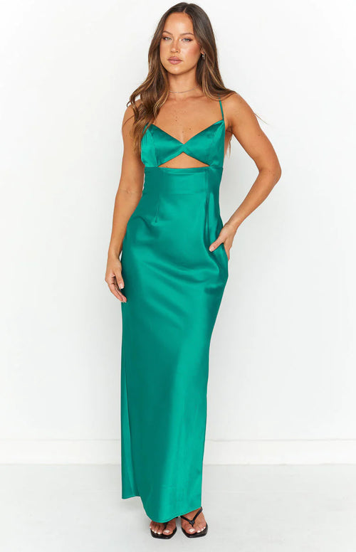 Beginning Boutique - Emerald "Hermitude" Satin Formal Dress - NEW WITH TAGS FINAL SALE