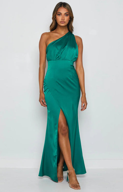 Beginning Boutique -Emerald "Romance" One Shoulder Maxi Dress - NEW WITH TAGS FINAL SALE