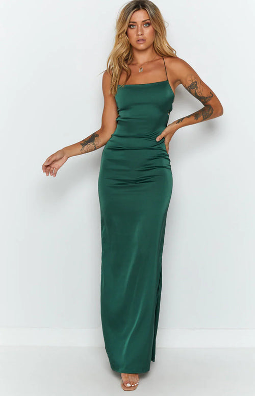Beginning Boutique - Emerald "Hermitude" Satin Formal Dress - NEW WITH TAGS FINAL SALE