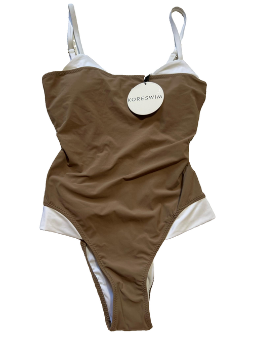 Koreswim - Brown and White Colorblock One Piece - NEW WITH TAGS