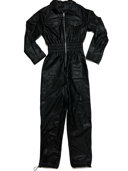 Hours - Black Pleather Jumpsuit